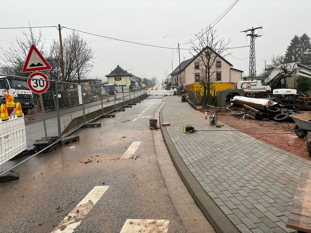 Bei der Baumaßnahme FWE „Nördlich der Primstaler Straße“ war von der Verlegung der Regen- und Mischwasserkanäle, Wasser- und Stromleitungen bis hin zu den Wiederherstellungsarbeiten alles beinhaltet. In insgesamt 6. Bauabschnitten wurden etwa 713 m Kanäle in den Dimensionen DN 300 – 400 sowie 770 m Wasserleitung- und 445 m Stromleitungen verlegt. Die Herstellung des Auslaufkanals erfolgte mit Rechteckprofilen 1000/1000 Stb einschließlich Vereinigungsbauwerk. Im Nachgang zu den Kanalbauarbeiten gingen die Wiederherstellungsarbeiten der kompletten Gehweganlagen sowie die Asphaltierungs- und Markierungsarbeiten von statten. Die Arbeiten wurden überwiegend unter Vollsperrung sowie in Teilbereichen auch unter halbseitiger Sperrung ausgeführt.
